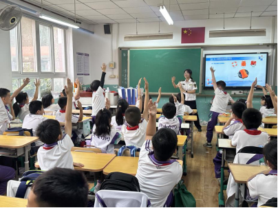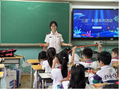 活动伊始,许老师便以“海事安全”为切入点,用孩子们听得懂、感兴趣的方式打开话题。“人员落水后,都可能面临一些什么样的危险和困境呢?该怎么应对?”老师抛出的趣味问题,瞬间点燃了同学们的好奇心。活动中,老师不仅细致介绍了海上遇险的自救常识,还结合互动环节,现场变身“技能课堂”。救生衣怎么穿?老师邀请同学上台“实战演练”,同学们积极参与,在互动中提升了应急反应能力。