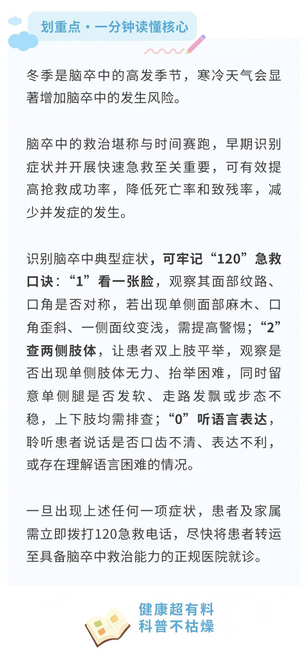 【科普“云课堂”】天冷易诱发脑卒中!记住这些信号,关键时刻能救命