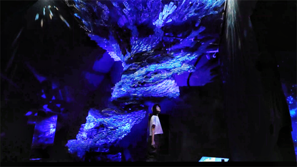 《荧光海滩》是一件沉浸式数字艺术作品,艺术家的创作灵感是来源于“蓝眼泪”现象。在“漫无边际”的荧光海滩中,创造一道永不停歇的荧光海浪,为所有“追光者”打造出一个可以忘记时间沉浸其中的“心流世界”。