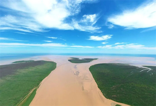 黄河入海时,黄蓝泾渭分明,演绎真实的“沧海桑田”。