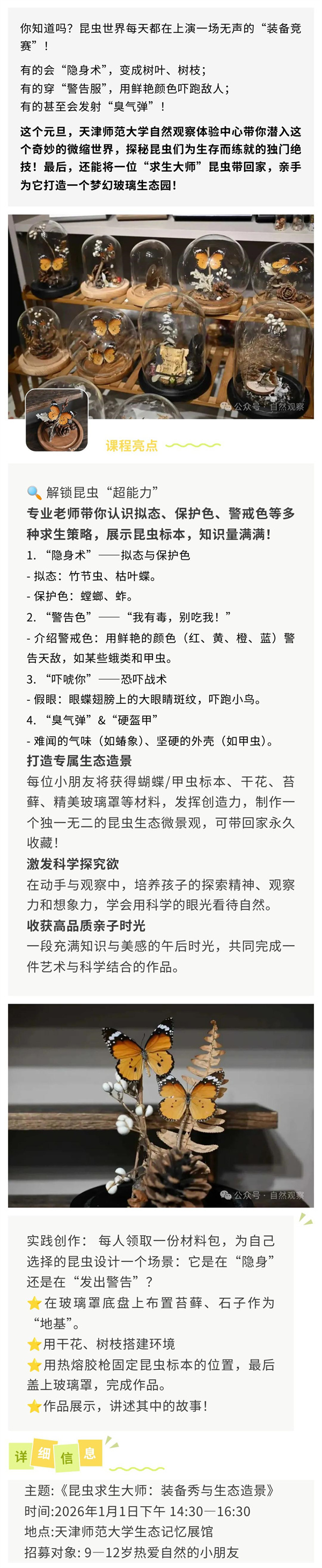 【惠玩攻略】天津师范大学自然观察体验中心“昆虫求生大师”科普研学营报名进行中