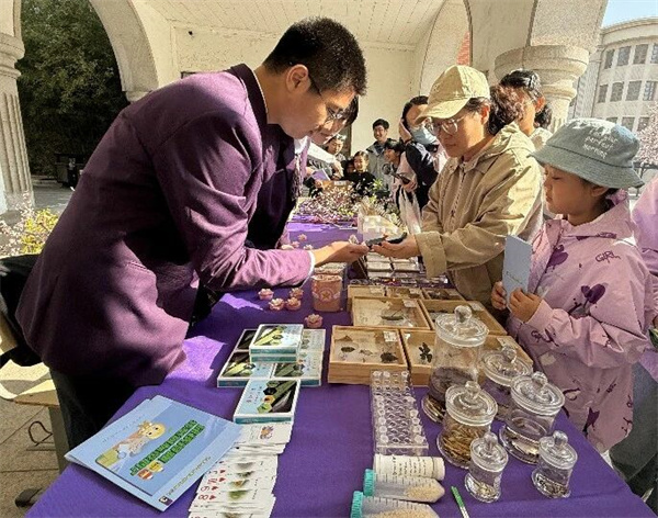 活动现场,科普团队精心布置三大展示区。在种子标本专区,种质资源展示瓶、多种作物种子发芽过程滴胶标本、图文并茂的天津农作物优异种质资源科普宣传册等错落摆放。蔷薇科林果展示区,桃、梨、杏、樱桃等果枝点缀在海棠花海之中。昆虫标本展示区,陈列了液浸、针插、滴胶等多种类型的昆虫标本,直观呈现昆虫形态特征与生物多样性。科普团队与南开中学志愿者们一道,用通俗易懂的语言,向大家讲解种质资源收集与保护的重要意义、生物育种的核心价值,同时针对公众关心的转基因技术应用等热点问题答疑解惑,消除认知误区,传递科学理念。活动现场还设置了种质资源辨认赛、科普公众号推广等互动环节,让这次科普更具参与感,也更有温度。