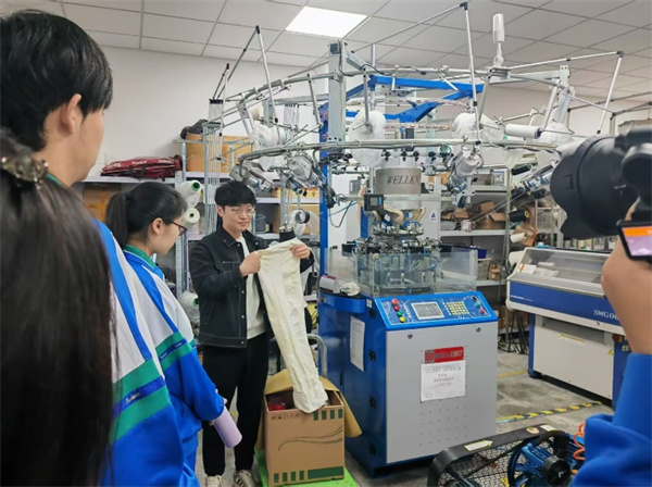 在科普志愿者的引导下,师生们随后依次参观了纺织微工厂、针织实验室、三维扫描工作室和智能可穿戴实验室,沉浸式体验现代纺织科技的多元应用场景。师生们近距离观摩了清梳联、并条机、粗纱机、细纱机等核心设备运行过程,系统了解纱线从原料处理到成形制备的完整流程,切身感受到纺织生产过程的精密性与科学性。工作人员围绕设备原理、工艺特点及实际应用进行了细致讲解,帮助师生进一步认识针织技术在现代生活中的广泛应用。来到智能可穿戴实验室,速度滑冰智能柔性人台等前沿成果的展示与讲解,让师生们更加真切地体会到纺织技术与智能科技交叉融合的广阔前景,也充分彰显了基地在前沿科技科普方面的鲜明特色与创新优势。